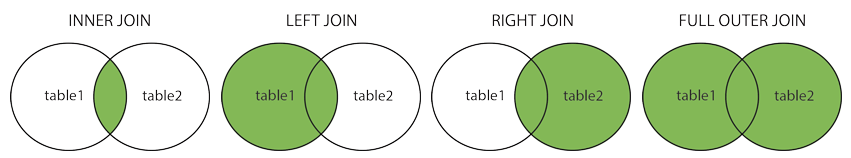 There are 3 types of joins that are available in SQL. The following is a good diagram that explains the results from each join type: The diagram and more information can be found here: https://www.w3schools.com/sql/sql_join.asp