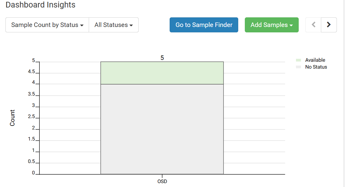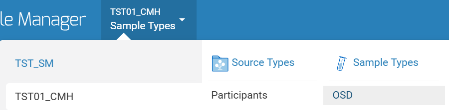 To access the samples view, select the study and then the desired sample code from the drop-down menu under the Sample Types heading: