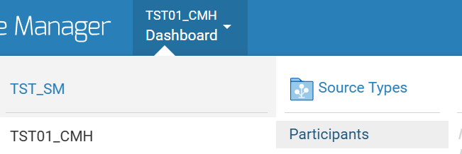 To access the participants view select the study and then the participant button from the drop-down menu under the Source Types heading as shown below: