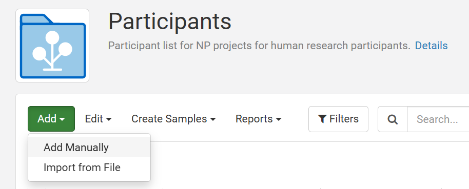 After being redirected to the sample manager dashboard by default, always ensure a study is selected before accessing participant, sample or assay information.