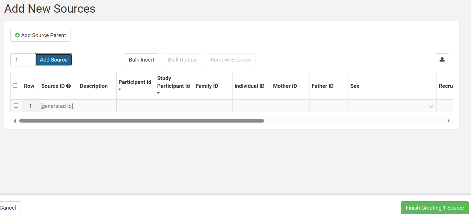 Click the Add Source button and enter the required fields once completed and click the 'Finish Creating Source button' to create the participant.
