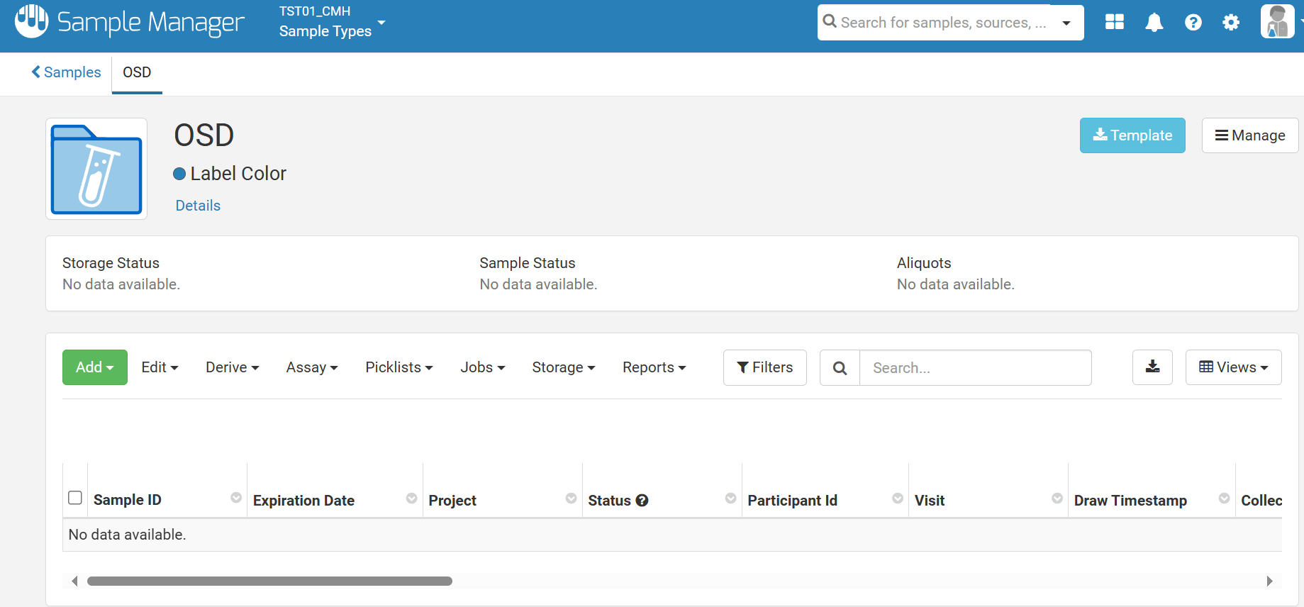 After selecting the Sample Manager project, you will be redirected to the sample manager dashboard which is the root of the sample manager folder.