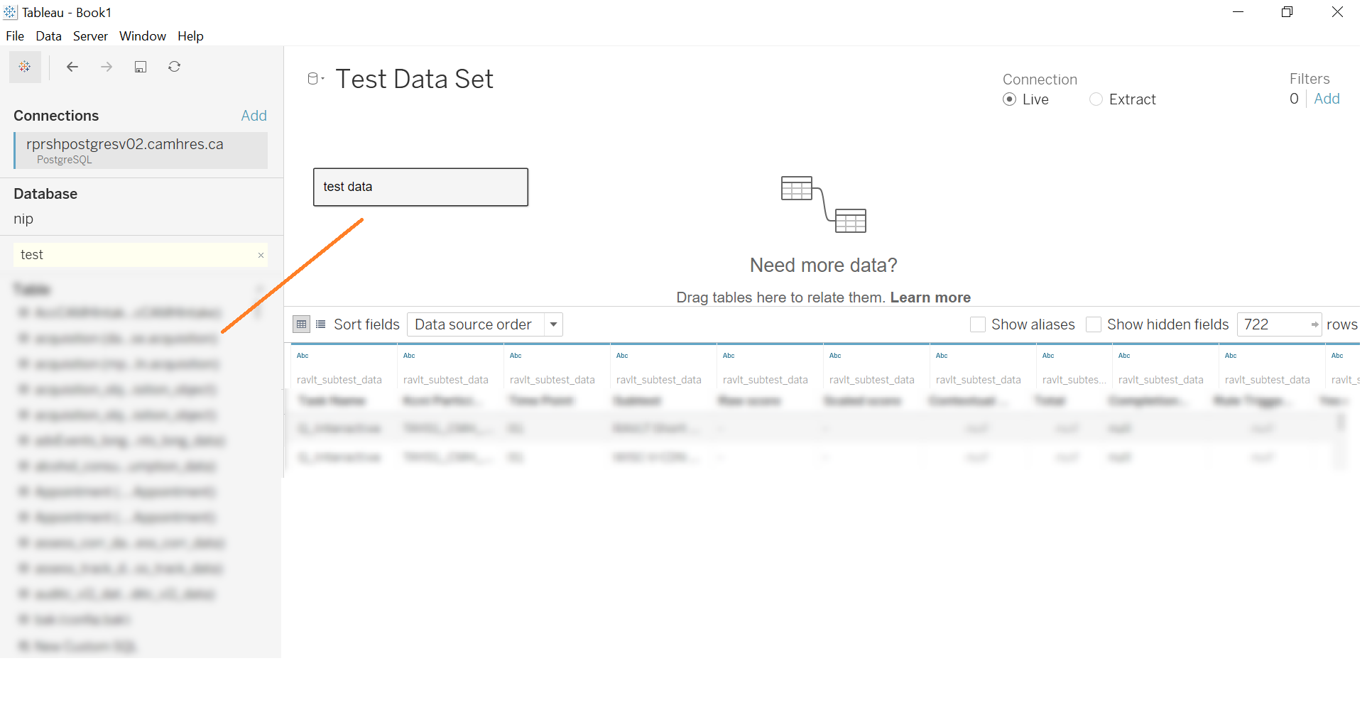 3. Drag the table of interest from the data tables to access the data:
